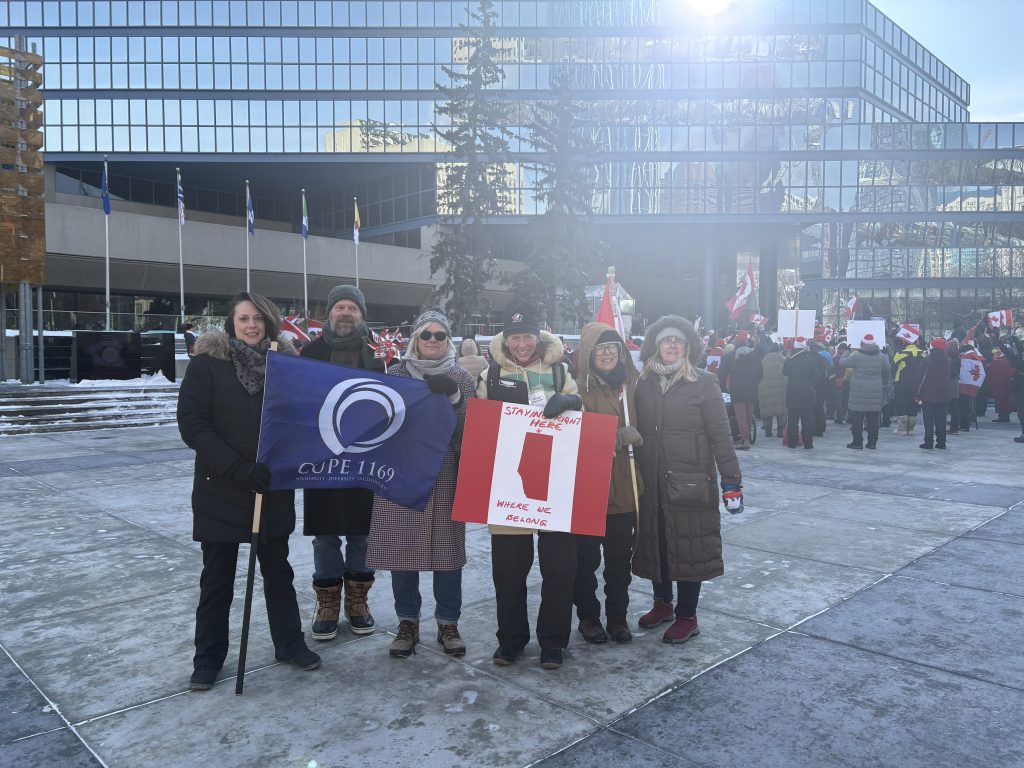 Ashley Bauer, our treasurer and other Local 1169 members braved the frigid temperature to support a united Alberta.